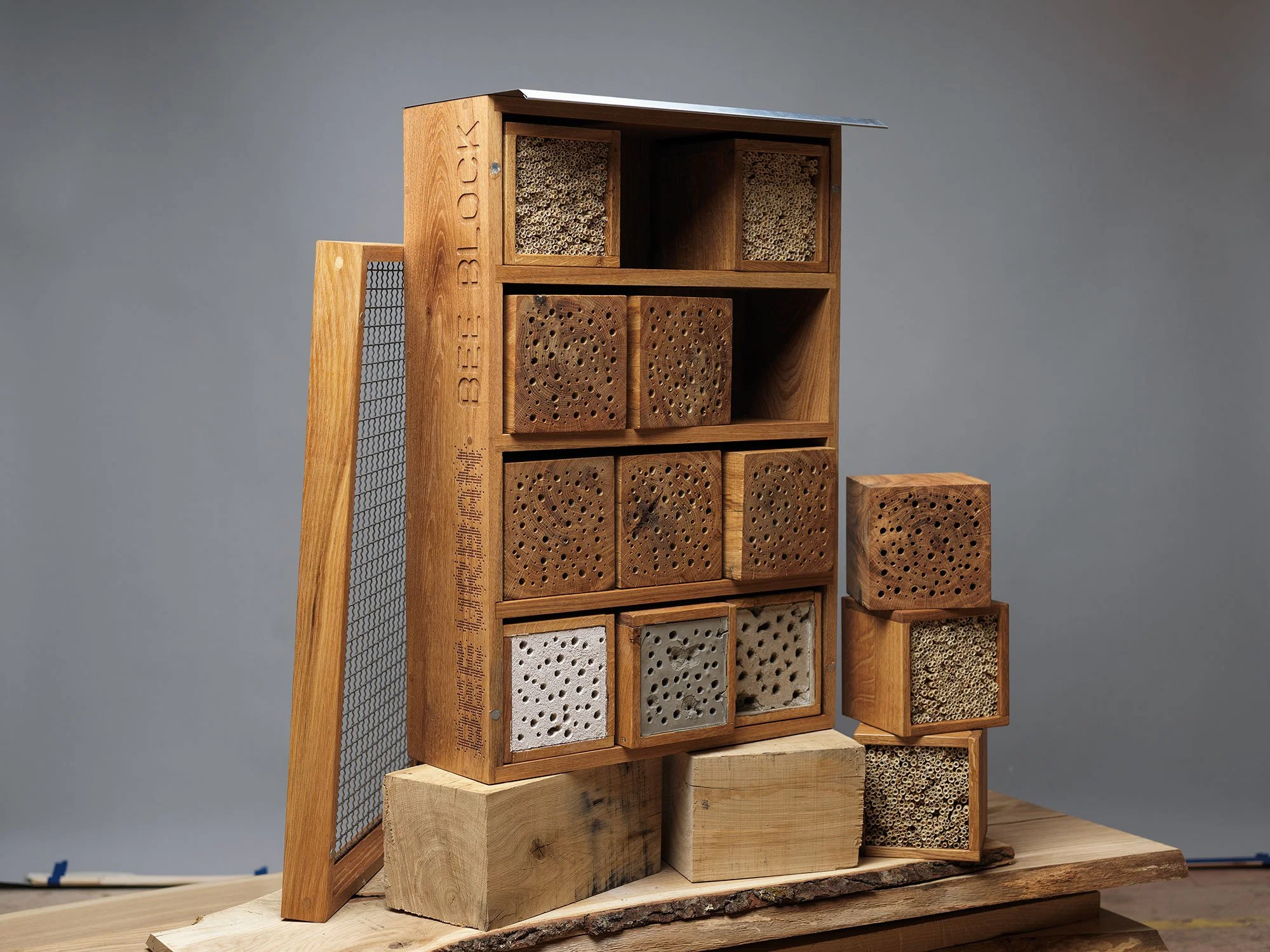 Blocket består av en ram med 12 utbytbara boplatskuber. Syftet med de utbytbara delarna är att kunna anpassa installationen efter vad som visar sig fungera rent praktiskt på platsen. Det vill säga, vilka arter som väljer att bosätta sig. Efter några år kan det också vara bra att byta ut delar som inte längre gillas av bina.